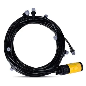 Sistemul Patio Mistcooling Kit sistem de ceață pentru foișoare și grădini este un set de microaspersoare care pot fi folosite pentru a uda plantele, a umidifica și răci aerul și a crea ceață artificială. Acesta este folosit în sezonul cald, iar pentru iarnă este păstrat sau recoltat până în sezonul următor. Poate fi folosit acasă sau instalat pe locurile de joacă de vară din cafenele și restaurante. Transformați spațiul dvs. exterior într-o oază răcoritoare cu Patio Mistcooling Kit. Fie pentru relaxare sau afaceri, acest sistem asigură o atmosferă plăcută pe tot parcursul verii!